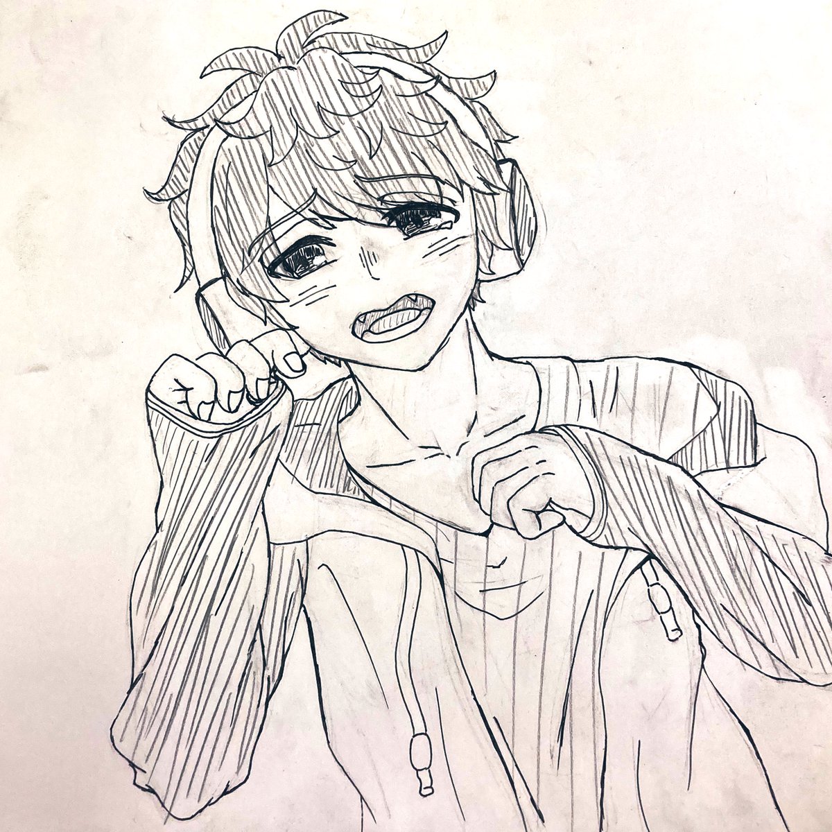 授業課題で二次創作OKだったので、簡易的な笹アンを描きました! 本来は背景に階段があるけど、課題の都合上身バレ必至なので無し🙅♂️verです! #絵ンジュ #笹の絵 (少し雑さが目立つかも💦)