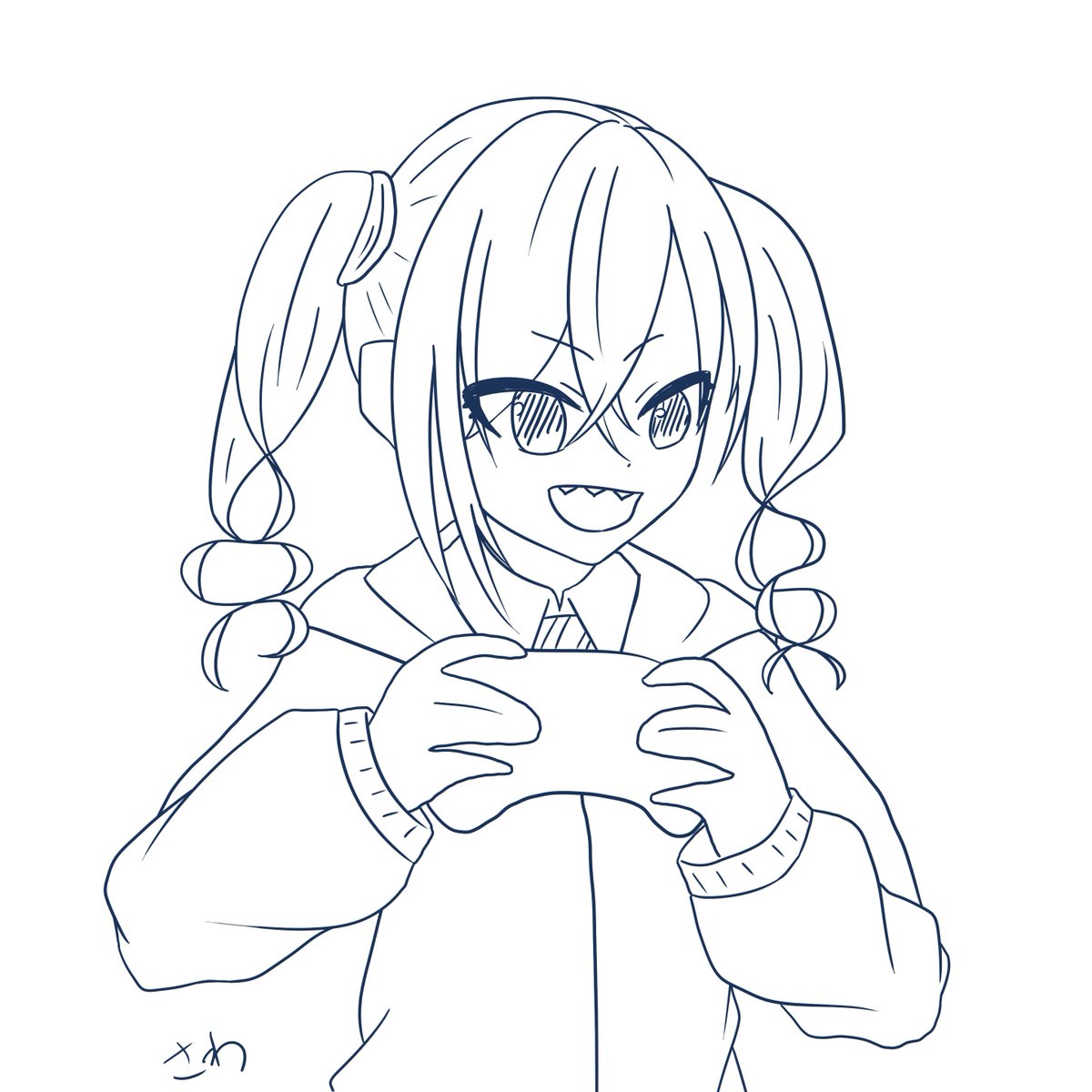 10 29 #モバマス版深夜の真剣お絵かき60分1本勝負 #砂塚あきら ゲームをプレイするあきらちゃん描きました! 装飾&着色できなかった!1時間短い😭 22/04/25 23:02