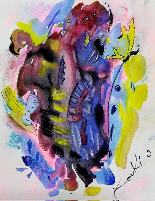 1 15 今日も暑い鹿児島です。本日の当作品は製作年月日不明の作品です。ノータイトルとなります。19×24cm原画サイズ。洋紙使用。今日も良き一日をお過ごし下さいませ。#抽象画 #画家 #ギャラリー #展示会 #絵描き #織月紅希 23/07/27 10:06
