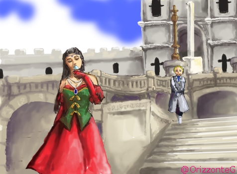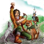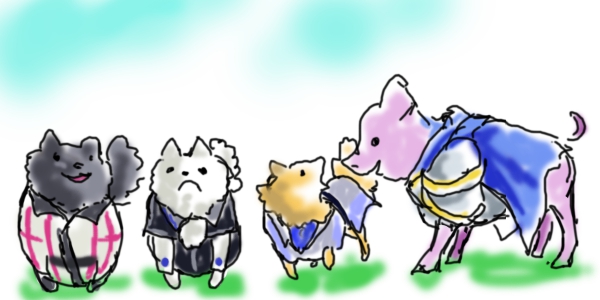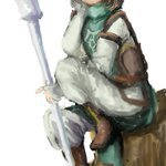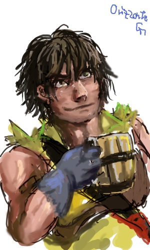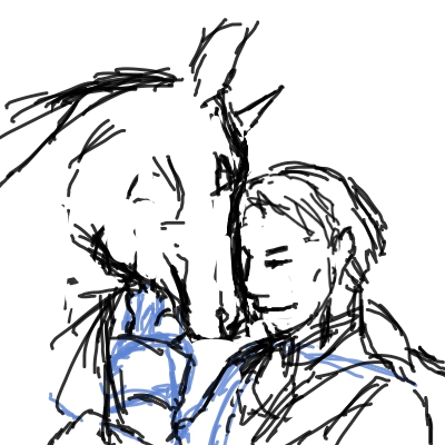 あんまりラフ残してないんですけど、 最近ので残ってたのはこれ ラフは大体ここまで描いたらそのまま塗ります 線が少ないので大分清書したぽい このまま1レイヤーでやることもあるし、 これは確か馬とクルガンで基本の色レイヤーで分けた気がする #このタグを見た人はラフ画とその完成絵を見せる