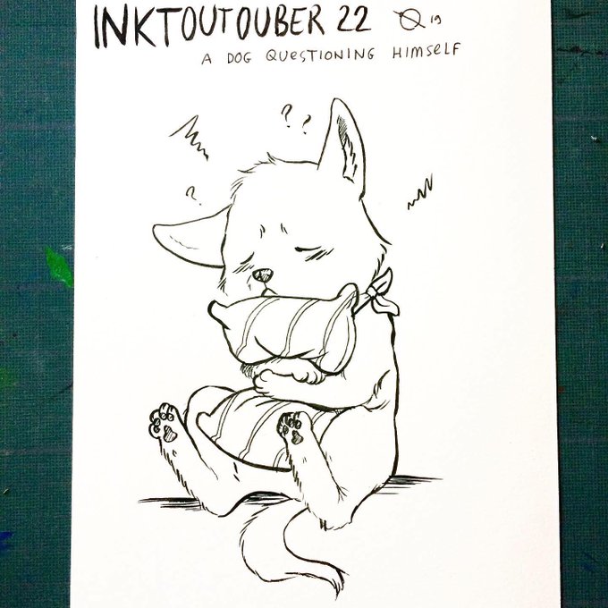 Le petit Chance se pose des questions sur cet #inktoutouber... c’est dur la vie de chiot ! 66/365 #inktober #inktober2019 #inktoberday22