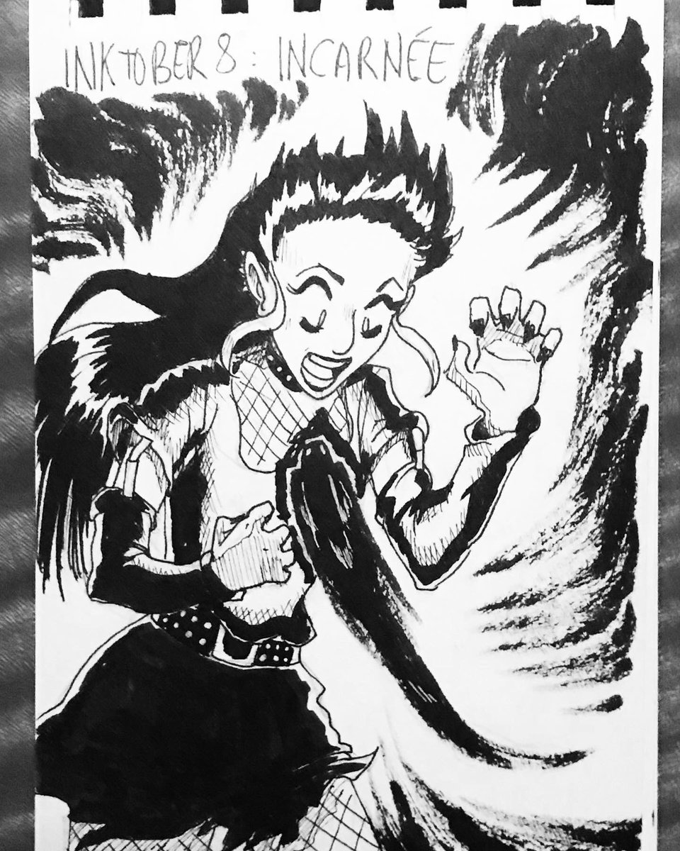 #adrinktober2021 Jour 8 : Incarné Alors deux versions pour celui-là. Dans tous les cas je voulais y inclure ma gothique, mais j’étais pas contente de la première version (celle où elle se fait posséder) Parfois c’est bien de recommencer ! #inktober2021