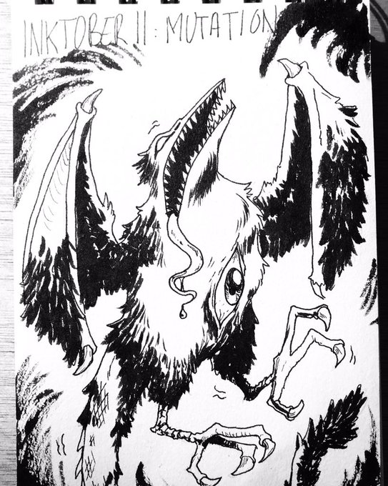 #adrinktober2021 Jour 11 : Mutation Le corbeau prend cher, j’avoue. Il est inspiré d’un lointain souvenir de corbeau méchant dans Inu Yasha #inktober2021