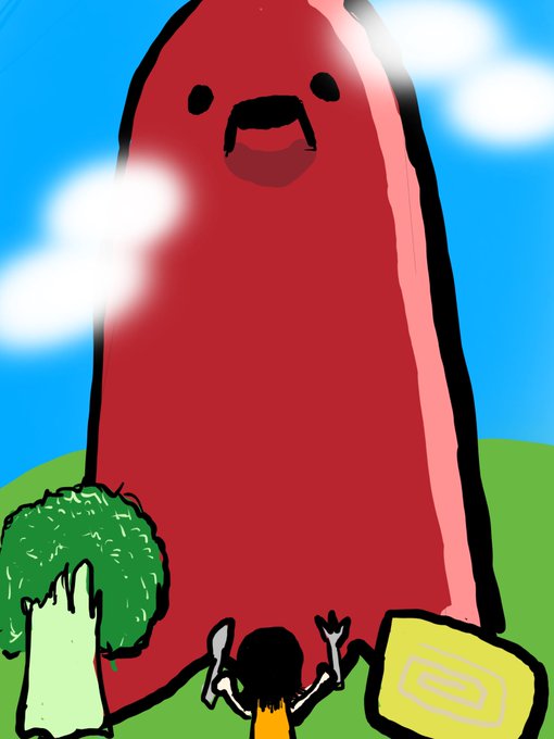 巨大タコさんウインナー(º﹃º) アオリ構図難しくてできてるかわかんないですが、お弁当平原にそびえ立つタコさんウインナーマウンテンを描きました(。・ω・。) タコさんウインナー揚げたやつが食べたい(º﹃º ) #きとこるお絵描企画