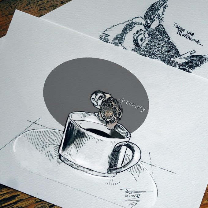 instagram.com/p/Cji16peLjLB/… #inktober #inktober2022crabby #inktober2022 #inktoberchallenge #inktober52 #crabby #procreate #illustration #coffee #owl #ink @inktober No me molesten por las mañanas