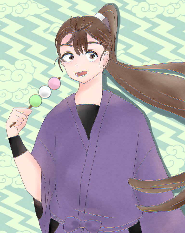 #リプをもらった番号の色を使って絵を描く 02で錫高野与四郎先輩!!! こういう系のやつ初めてで全然わかんなかったから背景をスタンプで誤魔化すという() ぼかしって使ってよかったんかな…?ダメだったらすみません💦