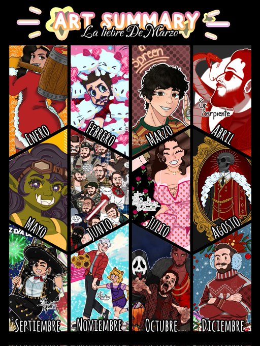 Estoy muy contenta con lo que eh hecho este año, gracias por apoyarme, la verdad se los agradezco muchísimo~♡ Y para finalizar dejo está imagen por aquí con algunos de los mejores dibujos de este año -3-)/ #artvsartist2022 #Artsummary2022 #2022創作回顧 #DigitalArtist