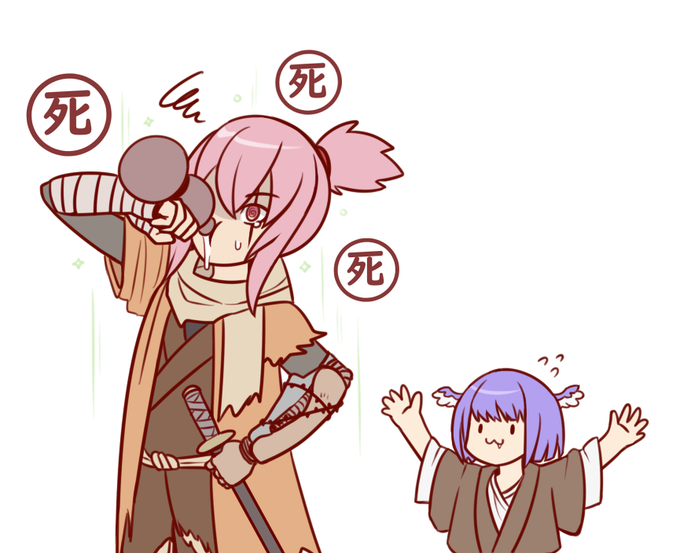 74 614 Sekiro stream was fun! 😆 quick doodle of Sekirosemi and smol Selen #GalleryOfRoses 21/12/05 17:08