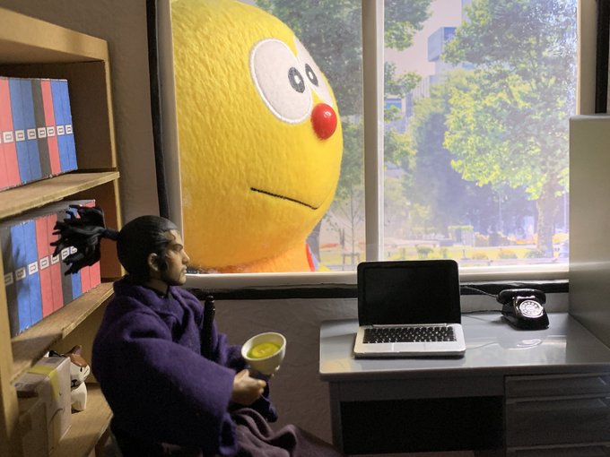 昨日仕事(窓の外を眺める)をしてたら机の引き出しから突然青い何かが飛び出したでござる!そいつはチラッとこちらを見てすぐに出ていったのでござるが一体なんだったのでござったか… とにかくお茶がこぼれてなくてよかったでござる… #オモ写