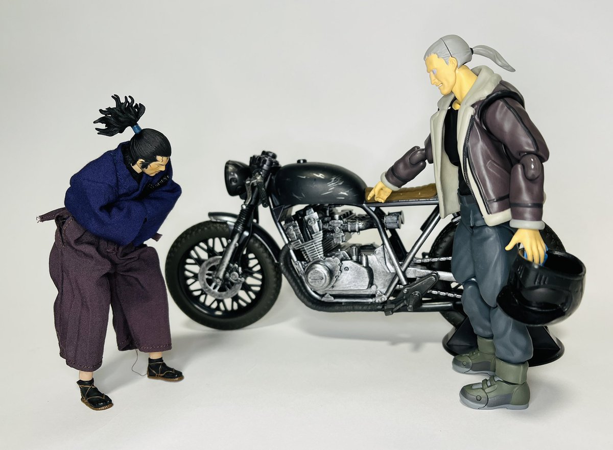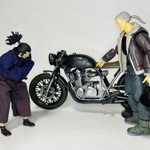 今日、バトー殿が新しいバイクに乗って遊びにきたでござる。 こだわりのカスタムを自慢げに説明してくれたのでござったが、正直何を言っているのかさっぱりだったでござる。 バトー「このエキパイをチョコパイにしてだな…」 拙者「ふむふむ…」 #オモ写