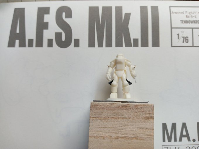 TENBOWKISSA 1/76 A.F.S. Mk.II 北Qに向けてそろそろエンジンかけていきます。 一体目は塗りを楽しむためレジンパーツのみで仕上げましたが、今回はやれるだけディテール追加。うん、目が疲れたw #マシーネンクリーガー #TENBOWKISSA