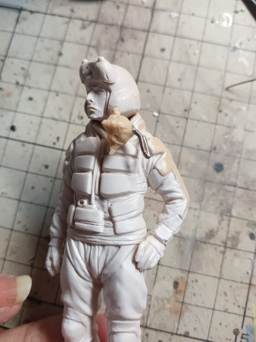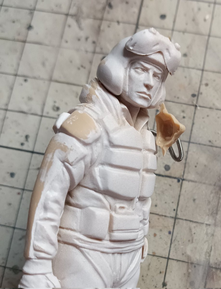 アンモナイツのイケおじパイロット、とりあえず塗り終わり〜。 やっぱり服塗ると雰囲気出るなぁ。 というわけで、イケおじだと思ったらいいね&コメントお願いします! #マシーネンクリーガー #アクリル絵の具 #筆塗り