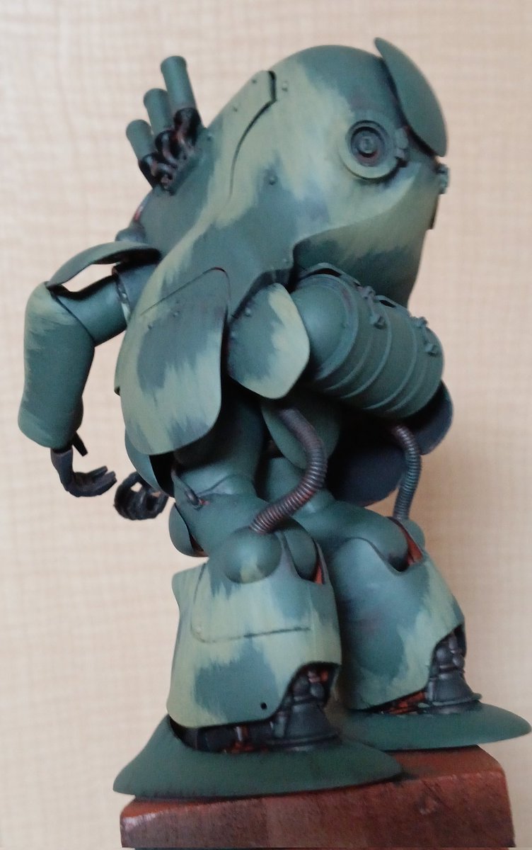 #プラモ買ってきて積まずに作る祭 #じっくりしっかり部門 デスアーミー、汚し塗装開始! 第一段階はターナーアクリルガッシュのセピアで全体をエイジング。ウォッシングの拭き取らない版です。 これで色を落ち着かせ、ケンカしないようにします。 #ガンプラ #筆塗り