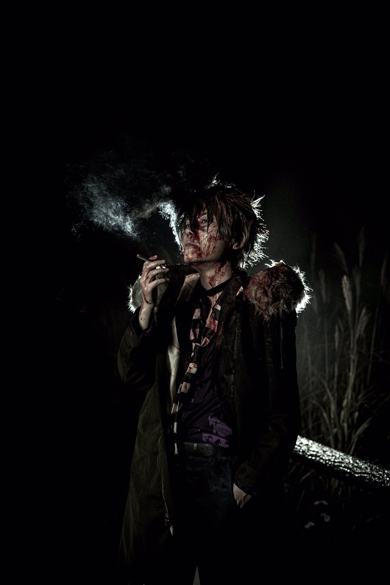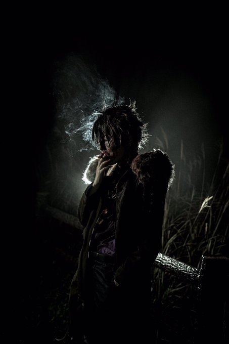 ※返り血注意 ※性癖注意 「血だらけで煙草ふかしてるブが見たい。」と言う突然の要望を撮ってくれた😭 photo...HARUURA @hr_1207yu model...軍曹 #まほやく_cos #HARUURA_camera