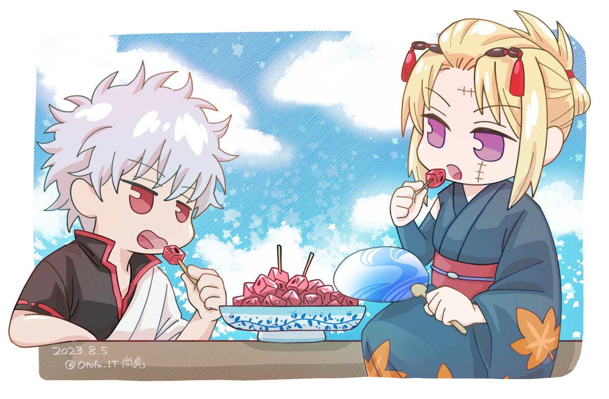 7月に描いたまま漫画優先で投稿を後回しにしてた夏の銀月。原稿中って名前変更ついでにこいつも投稿しちゃおうってことでアップ 四角カットのスイカって江戸時代には既にあったらしいので、銀月で仲良く同じ皿に盛られたスイカを食べてて欲しい