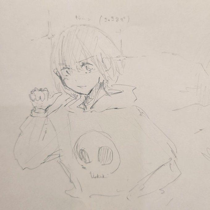 1枚目→2枚目 1度でいいから描いてみたかったんだ ※トレス有 #しにがみあーと #日常組