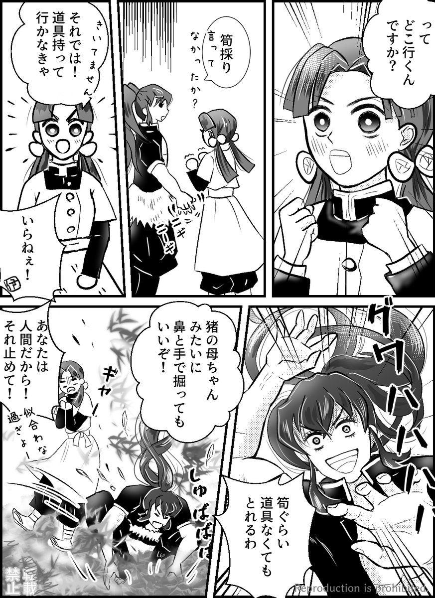 伊アオ 獣木主と筍を取りにいく話 1/2 ※再掲 #ポニテな獣木主様が見たい2 ※こちらの昨年のタグであげたのが、垢消しで消えているのに気づいたので、終わっちゃいましたが今更再掲させていただきます🙏
