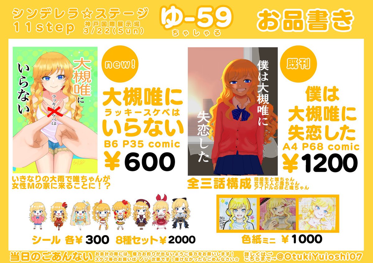 #シンステ11 #シンステ #cin_stage 3/12のお品書きです!! かわいいお品書きはマッシさんにデザインしてもらいました! ハッピーちゃけるなセットは私が作りました! ハッピーちゃけるなセット本当に少ないのでお早めに!! 当日よろしくお願いします!