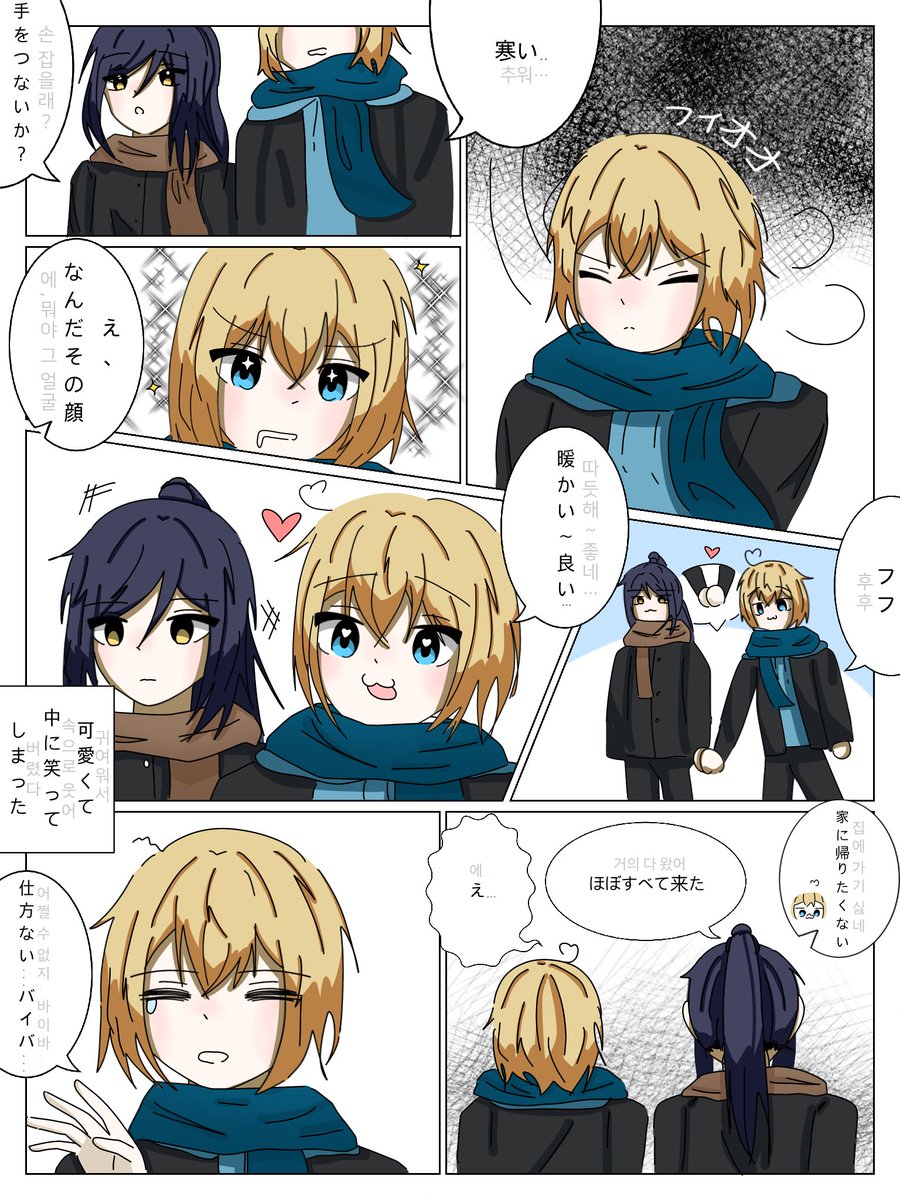 💙💛オウニビ ~! (2/2) 何か下校の道を考えて描きましたが、完成してからバッグがないということに気づいてしまいました…🥲😂
