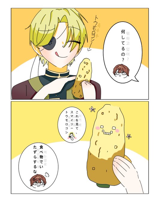 #クジ砂版ゆるワンドロ #秋の味覚 🌽 秋ですね~🌆🧡 トウモロコシ, 本当に好きです☺ そして栗煮物も好きです🌰🌰٩(ˊᗜˋ)و