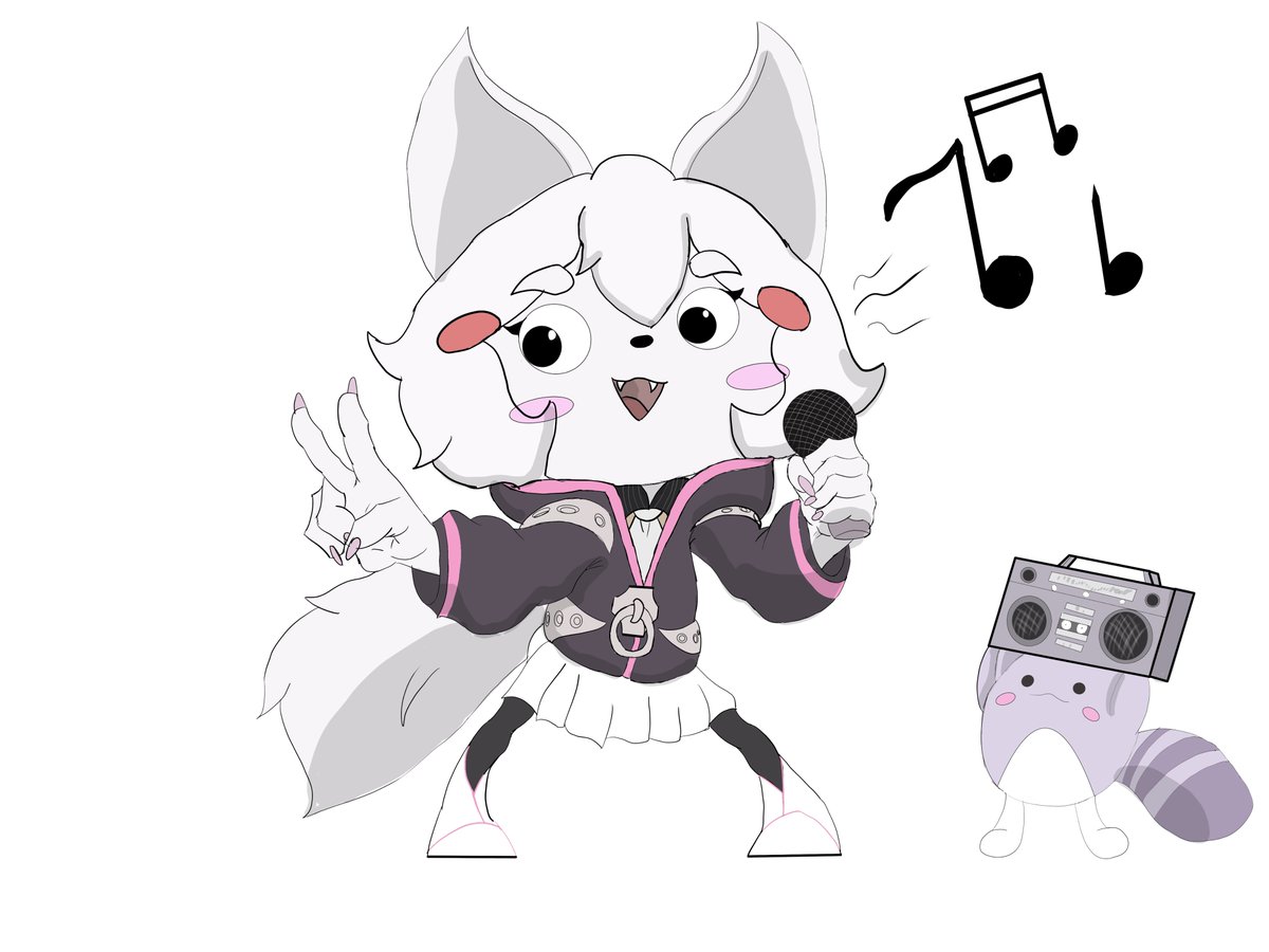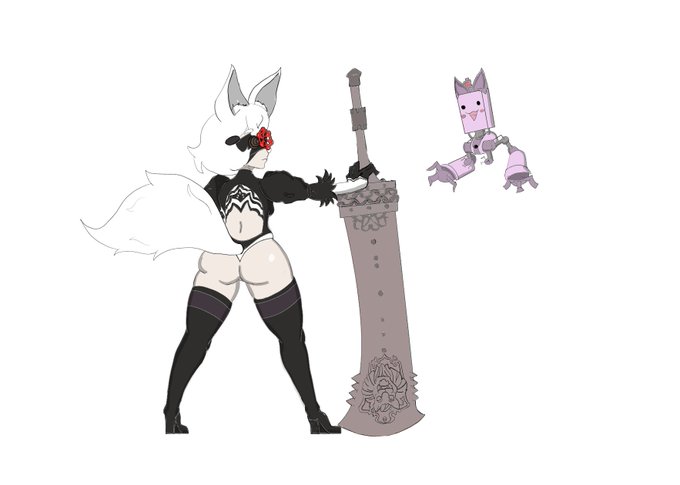 HaikuMa The Kitsune Robot with her trusty Theo sword, inspired by Tenma Maemi's Haiku the robot stream from today #Kanpainiki #Artcoholic