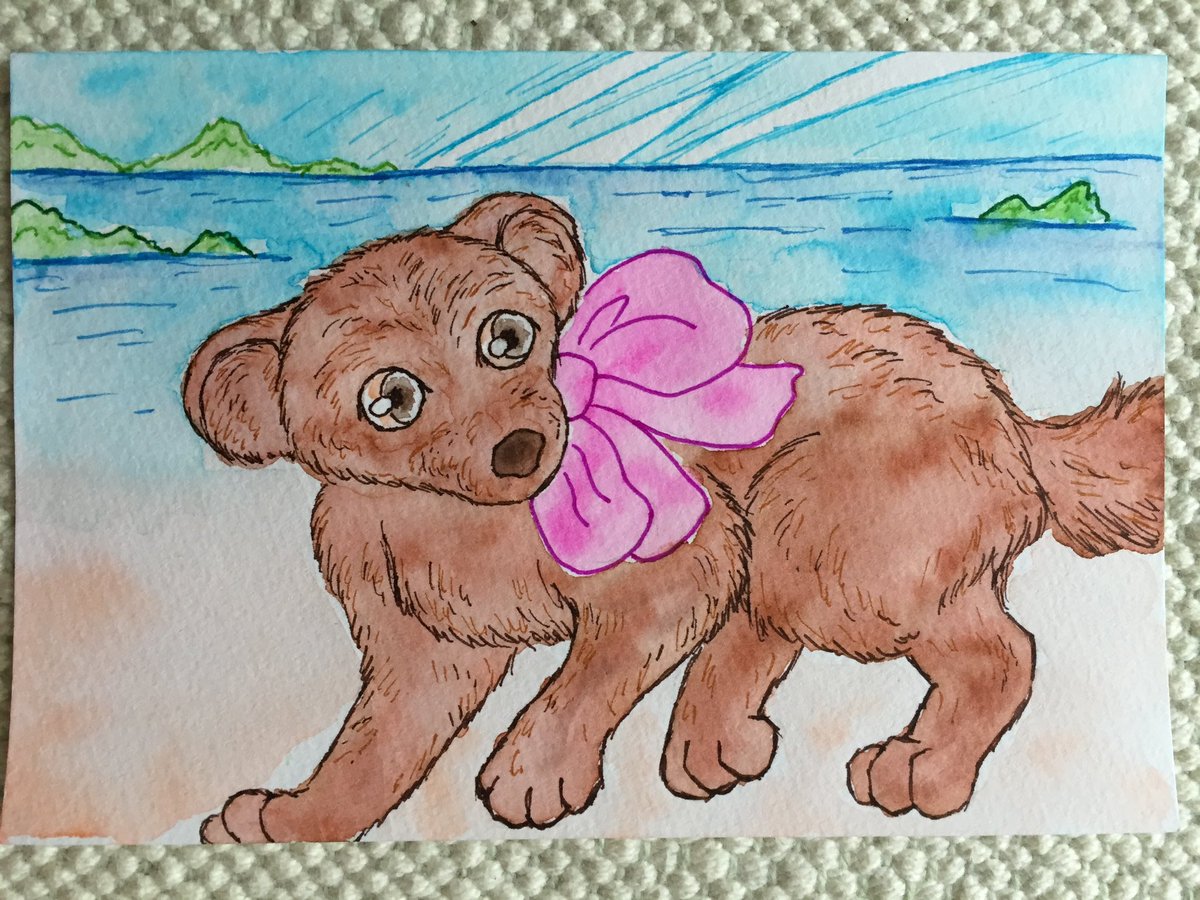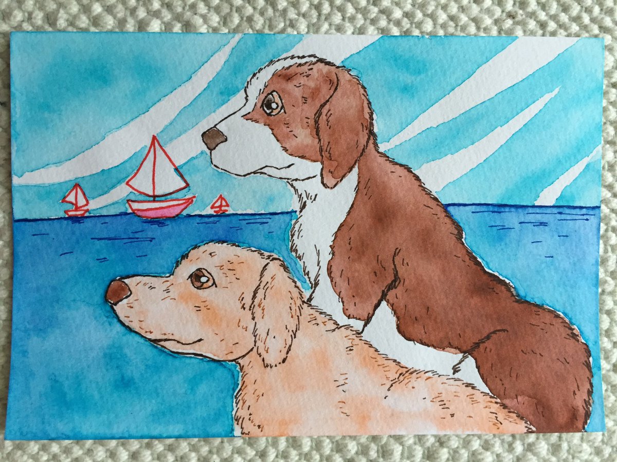 海辺の絵。決まった構図。#いぬのいる暮らし #過去絵を投げて絵を描いた気になろうキャンペーン