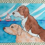 4 28 海辺の絵。決まった構図。#いぬのいる暮らし #過去絵を投げて絵を描いた気になろうキャンペーン 22/07/18 15:11