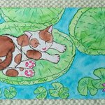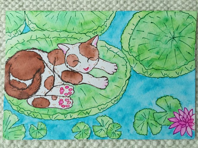 10 61 気分は避暑地。#猫の居る暮らし #過去絵を投げて絵を描いた気になろうキャンペーン 22/07/11 14:15