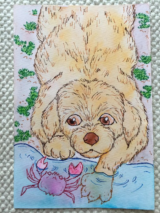 そろそろ水辺が恋しい。#いぬのいる暮らし #過去絵を投げて絵を描いた気になろうキャンペーン