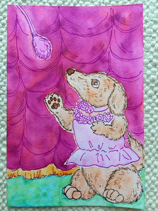 カーテンコール。#いぬのいる暮らし #過去絵を投げて絵を描いた気になろうキャンペーン