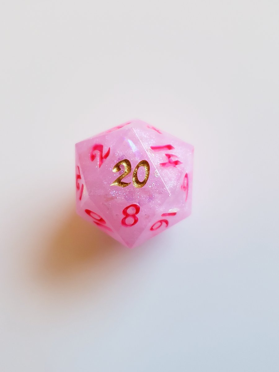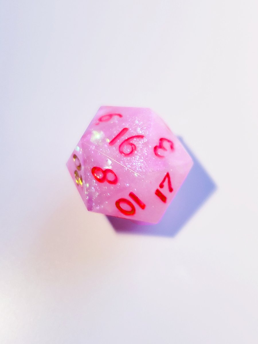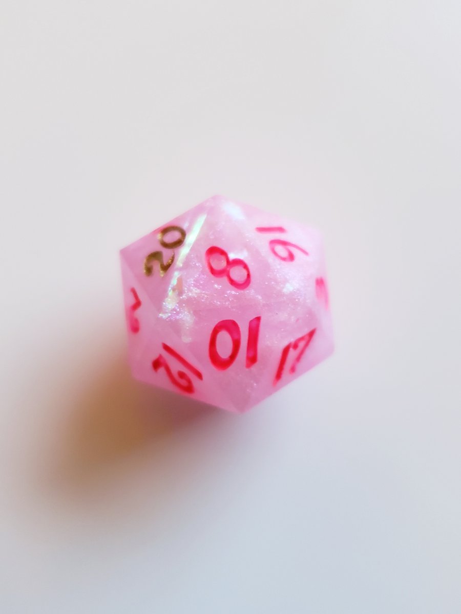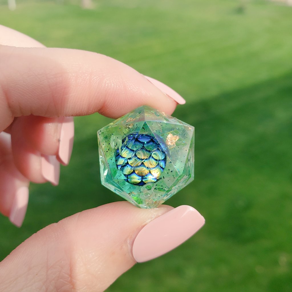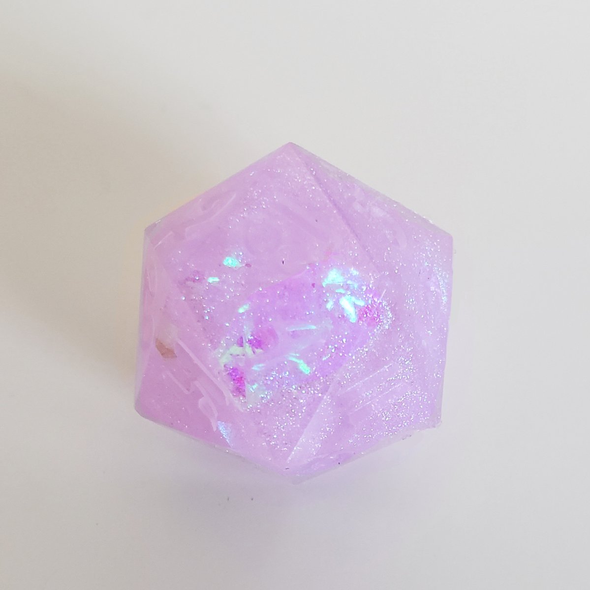 ✨WIP✨ Here's a sneak peak of my Exandria Unlimited Opal themed d20 👀 My camera literally cannot capture how sparkly this is. #HandmadeDice #CriticalRoleFanArt