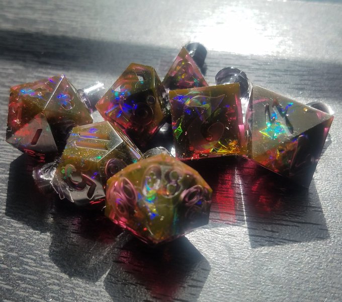 There's some new people here so I'd love to introduce myself! My name's Rin and it's so nice to meet you! I make fan-art dice, mostly for Critical Role! Here's a few of the dice I've made: Jester/Traveler, Dorian, Caduceus, & Henry Crabgrass #criticalrolefanart