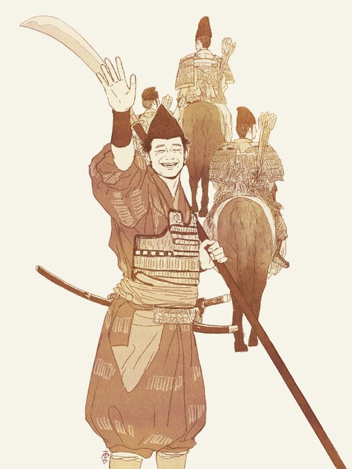 最期の展開がつらすぎて、忠義心に厚い仁田殿のことだからきっと頼朝様の行列にそのまま着いていかれたんだな、と夢をみてます....... #鎌倉殿の13人 #殿絵 #鎌倉絵