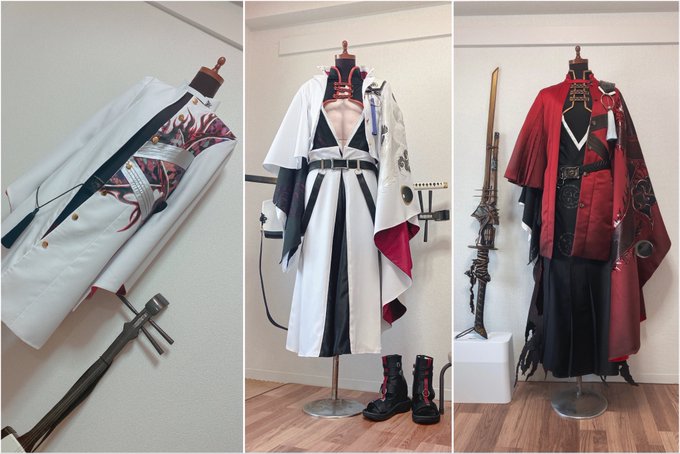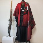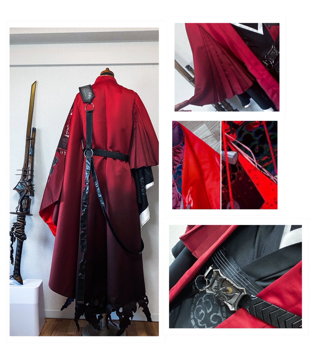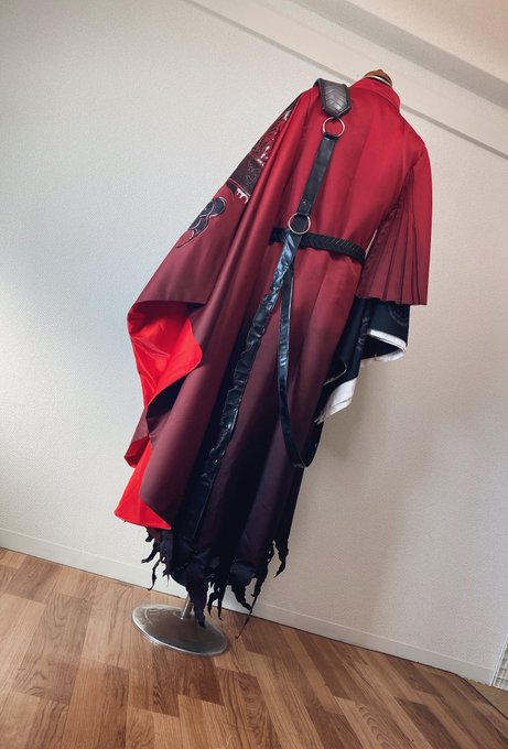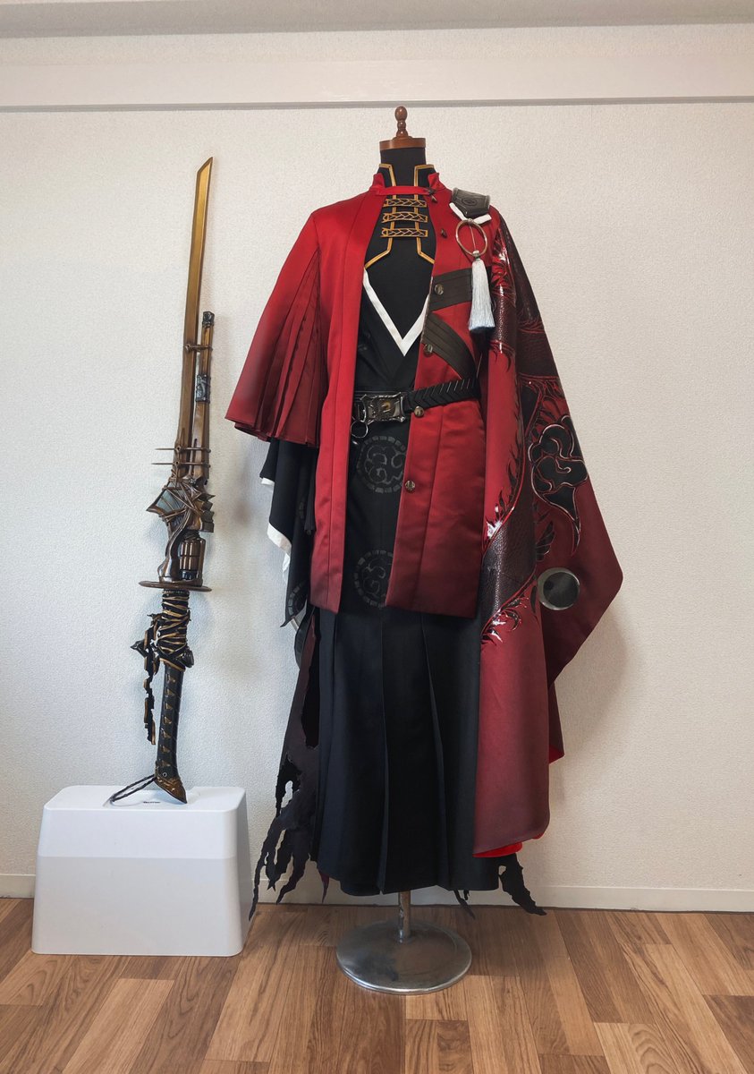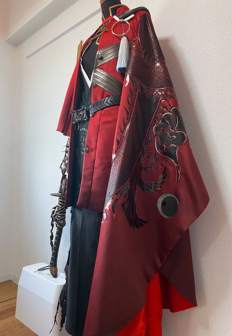 頑張った〜武器も布貼りの質感が好きなので布貼りです 袖の裏地が近しいやつ見つけれて気に入ってる、着た時のシルエット良くなるようにしました〜〜〜!