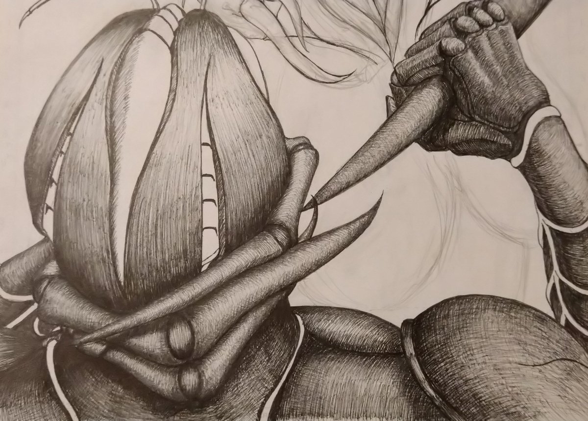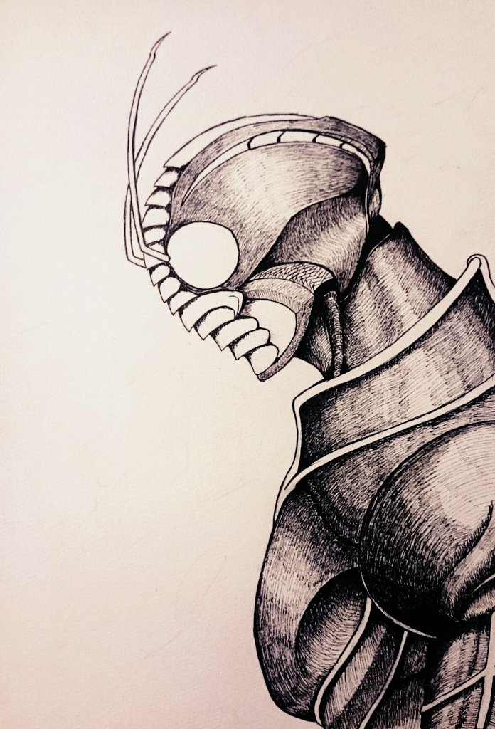 #このタグを見た人はラフ画とその完成絵を見せる 未完成でごめんなさいッ!! 蜘蛛女の指とライダーの腕を描き込むの楽しくて満足しちゃったんです… (´・ω・`) でも、描き込みを見てくれーッ!!