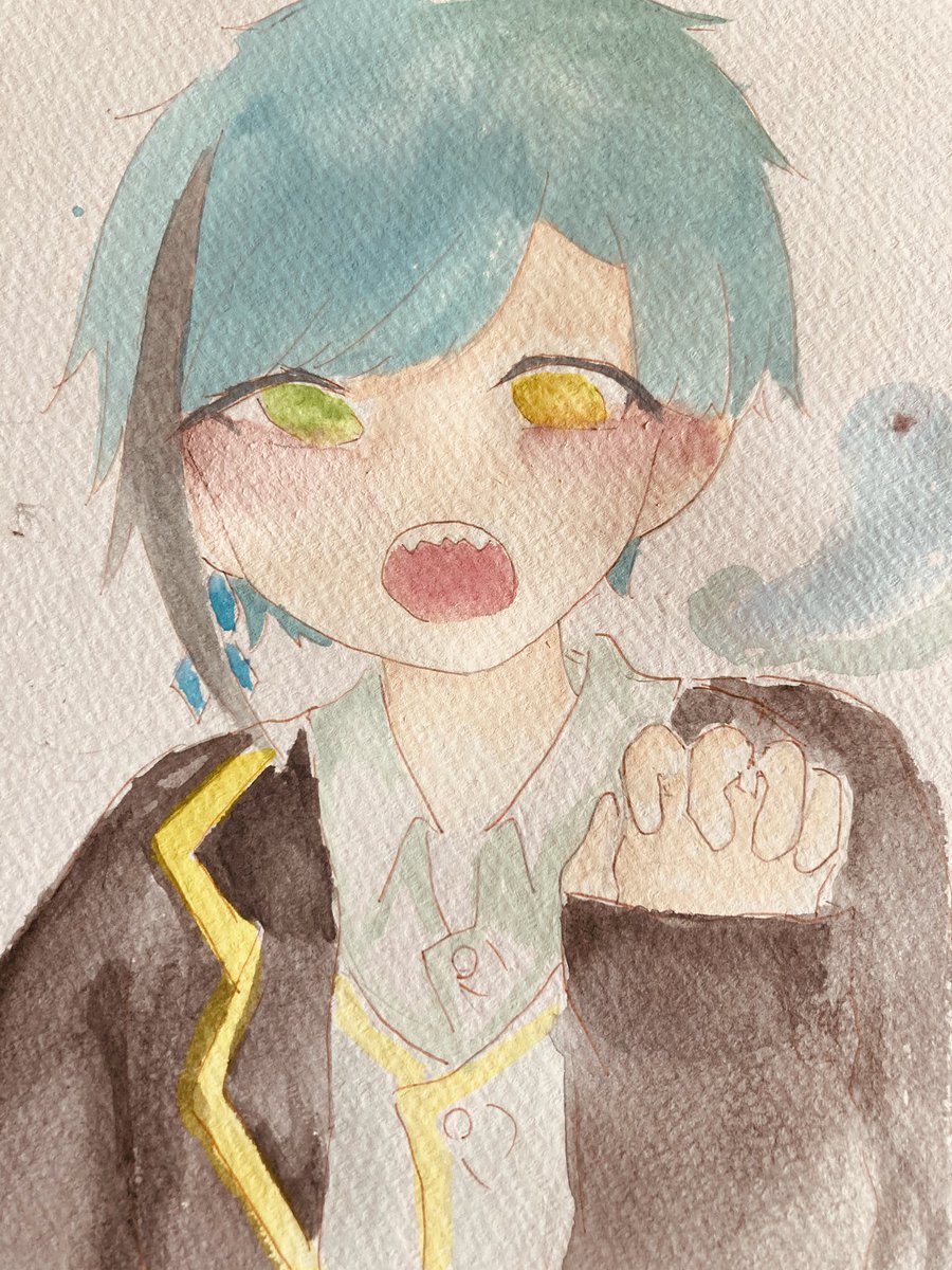 #ツイステファンアート フロイド先輩できた!!!ふぅ久しぶりに水彩したぜ