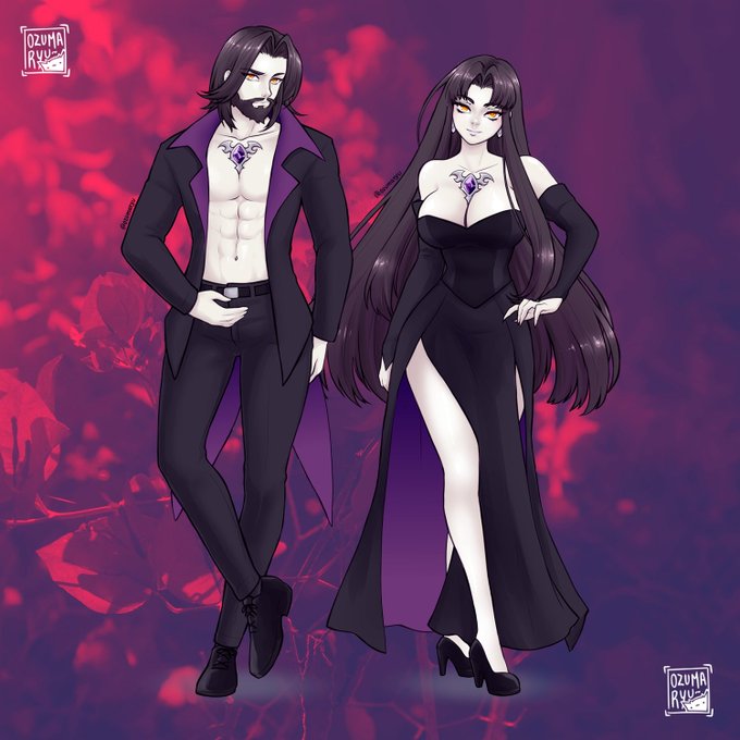 🩸 𝔚𝔞𝔫𝔱 𝔞 𝔱𝔞𝔰𝔱𝔢 𝔬𝔣 𝔱𝔥𝔦𝔰? 🩸 Vampire character male and female version, which one you like the most :3? #commissionopen #Commission #originalcharacter #digitalart