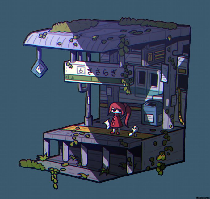 きさらぎ駅 / Kisaragi Station 「『怪異絡みかどうか調べてくれ』って指示だけど、思ったより現代的な駅だなぁ......」 「もっと田舎の駅だったらインスタ映えしたのに。昼に来ちゃったから雰囲気が台無しだよ」 #イラスト