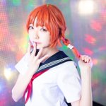 コスプレ JK 安部菜々 「ふぃぃ…17歳のJKアイドルとはいえ、アクション多めのステージはハードです。。。」 Photo カカシさん #コスプレ #デレステ