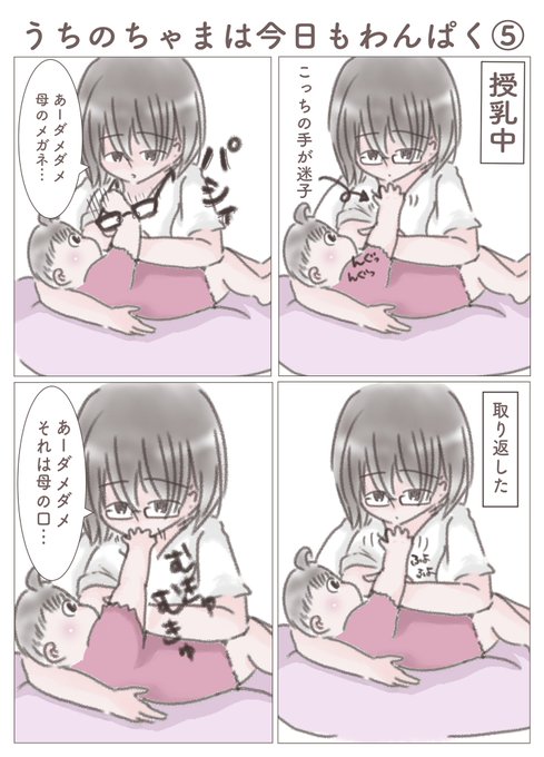 1 17 うちのちゃまは今日もわんぱく!⑤ 授乳中は様々な攻撃に遭う #育児漫画 #育児絵日記 #子育て #5m #漫画が読めるハッシュタグ 22/09/04 13:49
