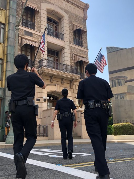 場所を移動して、Beverly Hillsエリアへ。 やはり、LAPDはヤシの木がよく似合います^^ #LEコス #LE装備 #コスプレ #USJ #UniversalStudioJapan #ユニバーサルスタジオジャパン