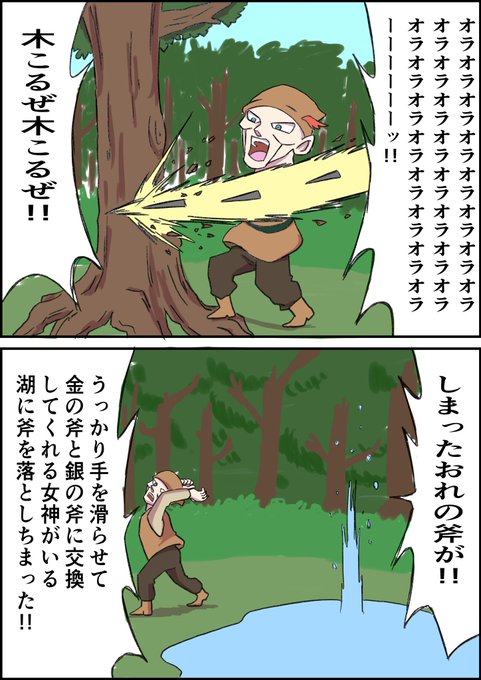 8 52 深夜テンション四コマ漫画 『金の斧銀の斧』 #四コマ漫画 #絵 20/04/20 18:29