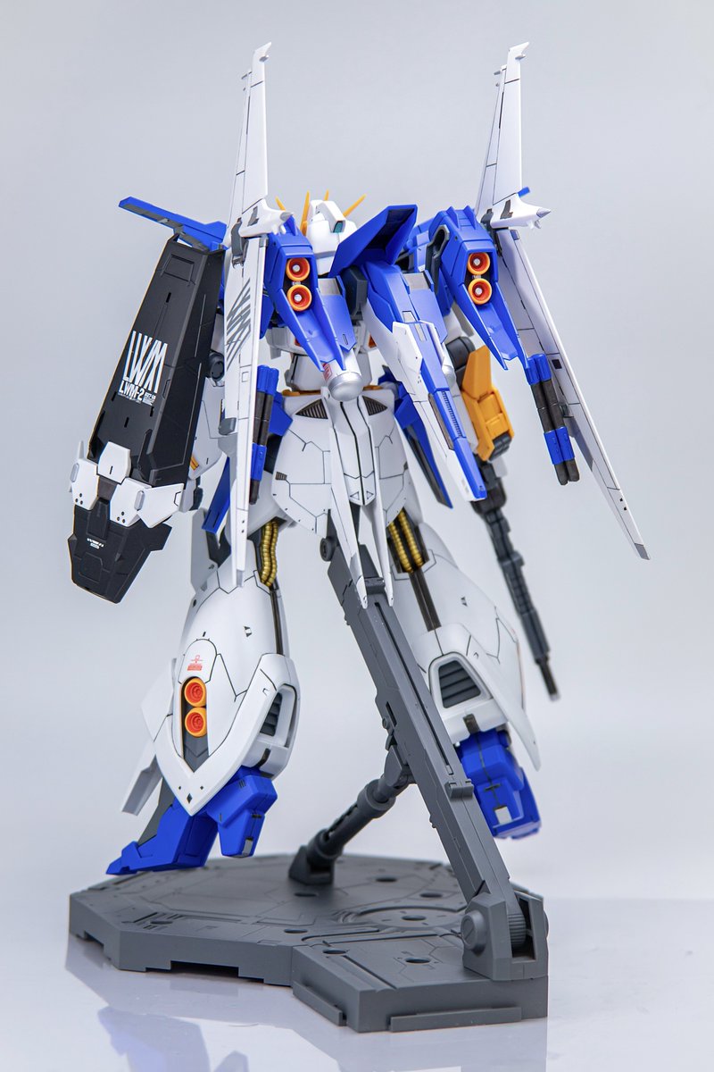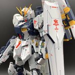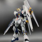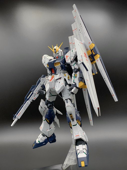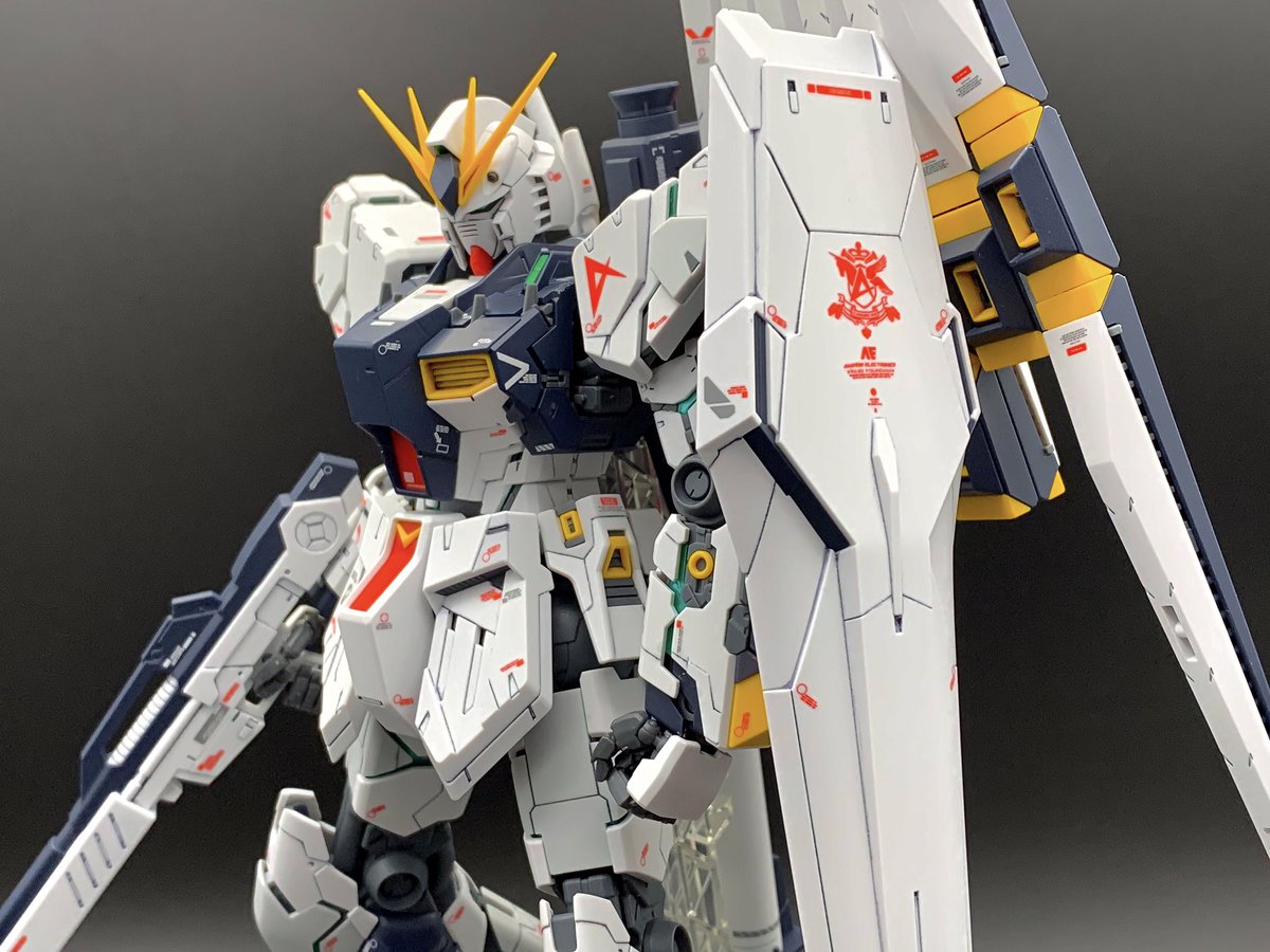 MG νガンダム完成! RGのアレンジとはまた違ったサイコフレームのチラ見せ感がカッコいいし、初めて仕上げに使ったクレオスのスーパースムースクリアーもいい仕事してくれたし最高 #ガンプラ