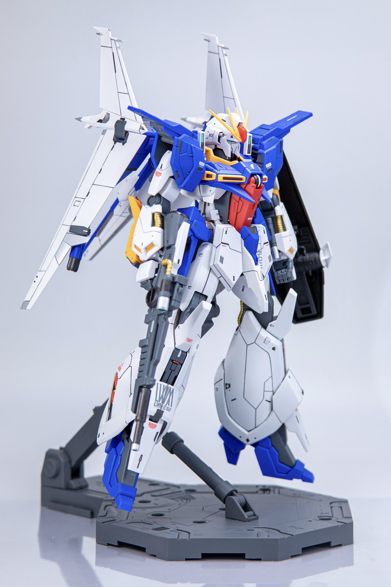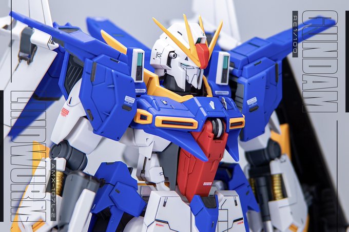 RE1/100 ガンダムリントヴルム れなふセンセ(@hoxy0010)にプロの写真撮ってもらいました👏✨流石✨ 制作は今回ゴールド・シルバー・グレーのポイント塗装、バーニアの塗り分け、膝下に1mmプラ棒で赤のワンポイント追加、仕上げにスムースクリア。このへんでまとめました。 #ガンプラ