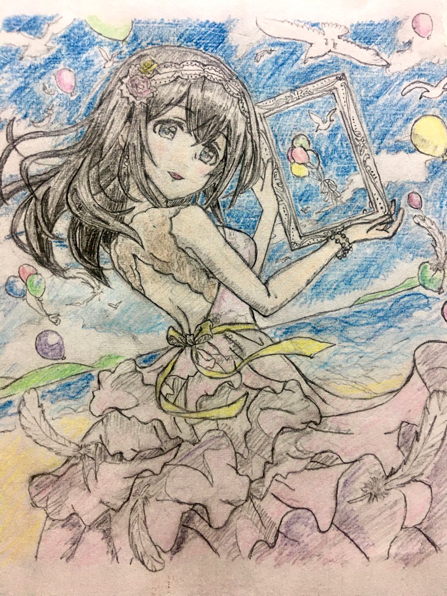 鷺沢文香さん誕生日おめでとうございます 再掲+色塗ってみました #鷺沢文香誕生祭2020 #鷺沢文香生誕祭2020 #模写