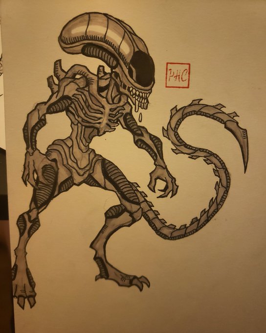 Inktober day 15!! Theme of the day was "alien" so what better monster to draw than the xenomorph from the Alien franchise!! #doodles #illustration #sketches #inktober #inktober2019 #creature #monster #alien #xenomorph