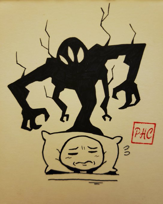 Inktober day 11!! Todays theme was "sleep paralysis".....lol this one was hard to think of so I just drew a spooky shadowy figure haunting sleeping peeps #doodles #illustration #sketches #inktober #inktober2019 #creature #monster