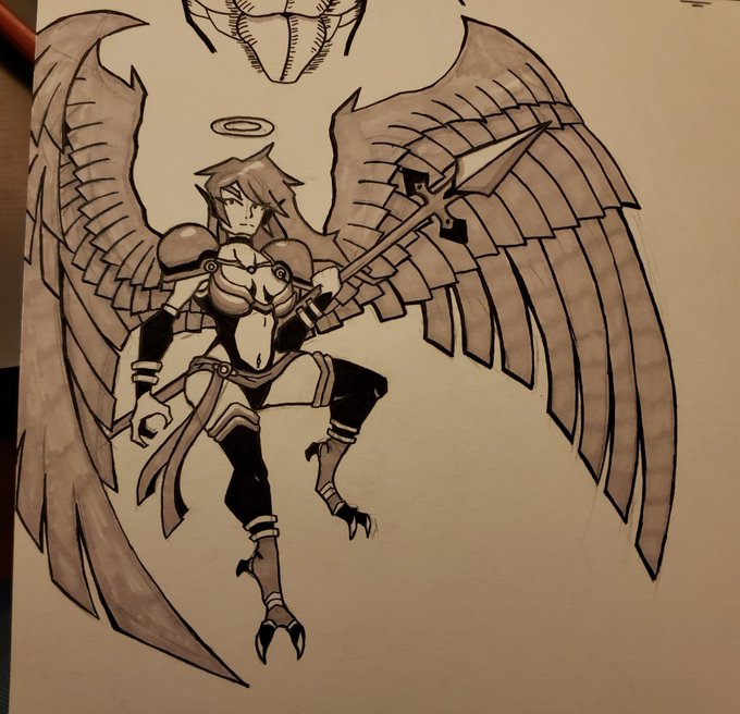 Inktober day 12!! Theme of the day was "angel"......took forever but I think it was worth it lol #doodles #illustration #sketches #inktober #inktober2019 #creature #monster #angel