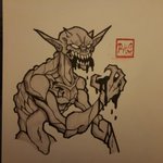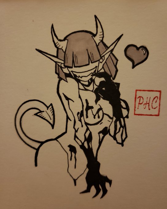 Inktober day 27!! Theme of the day was "cannibal" so I just drew this demon dude feasting on some special "meat" lol #doodles #illustration #sketches #inktober #inktober2019 #creature #monster #cannibal