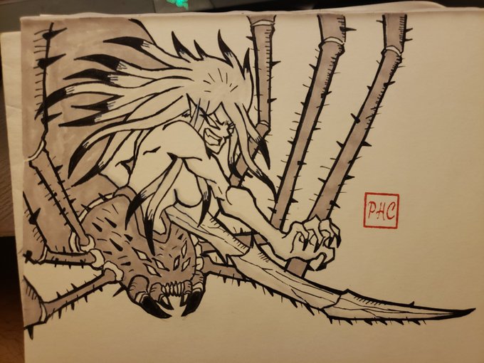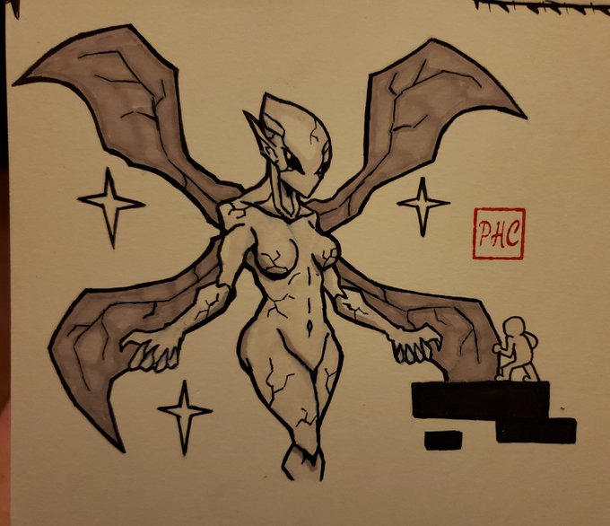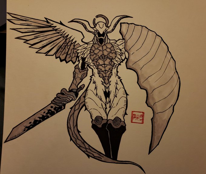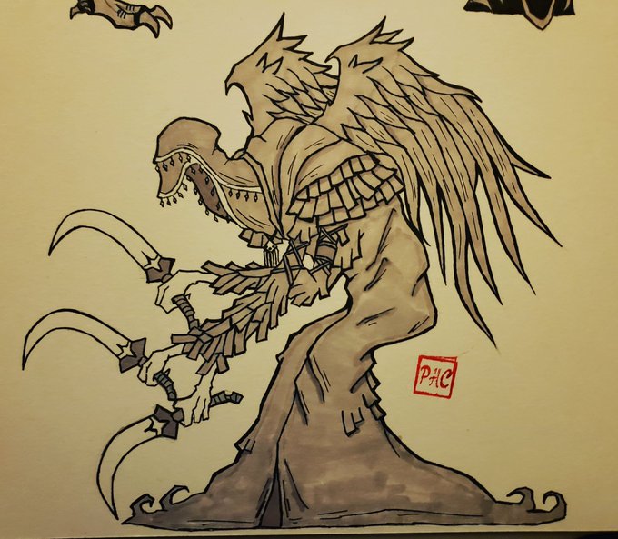 Inktober day 23!! Theme of the day was "guardian" so I doodled the guardian angel from Devil May Cry 4, Angelo Credo...miss playing that game lol #doodles #illustration #sketches #inktober #inktober2019 #creature #monster #guardian #devilmaycry4 #angelocredo